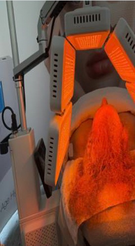 Through controlled photodynamic stimulation, the system improves microcirculation and modulates inflammatory response, promoting structural repair and visible skin rejuvenation.
