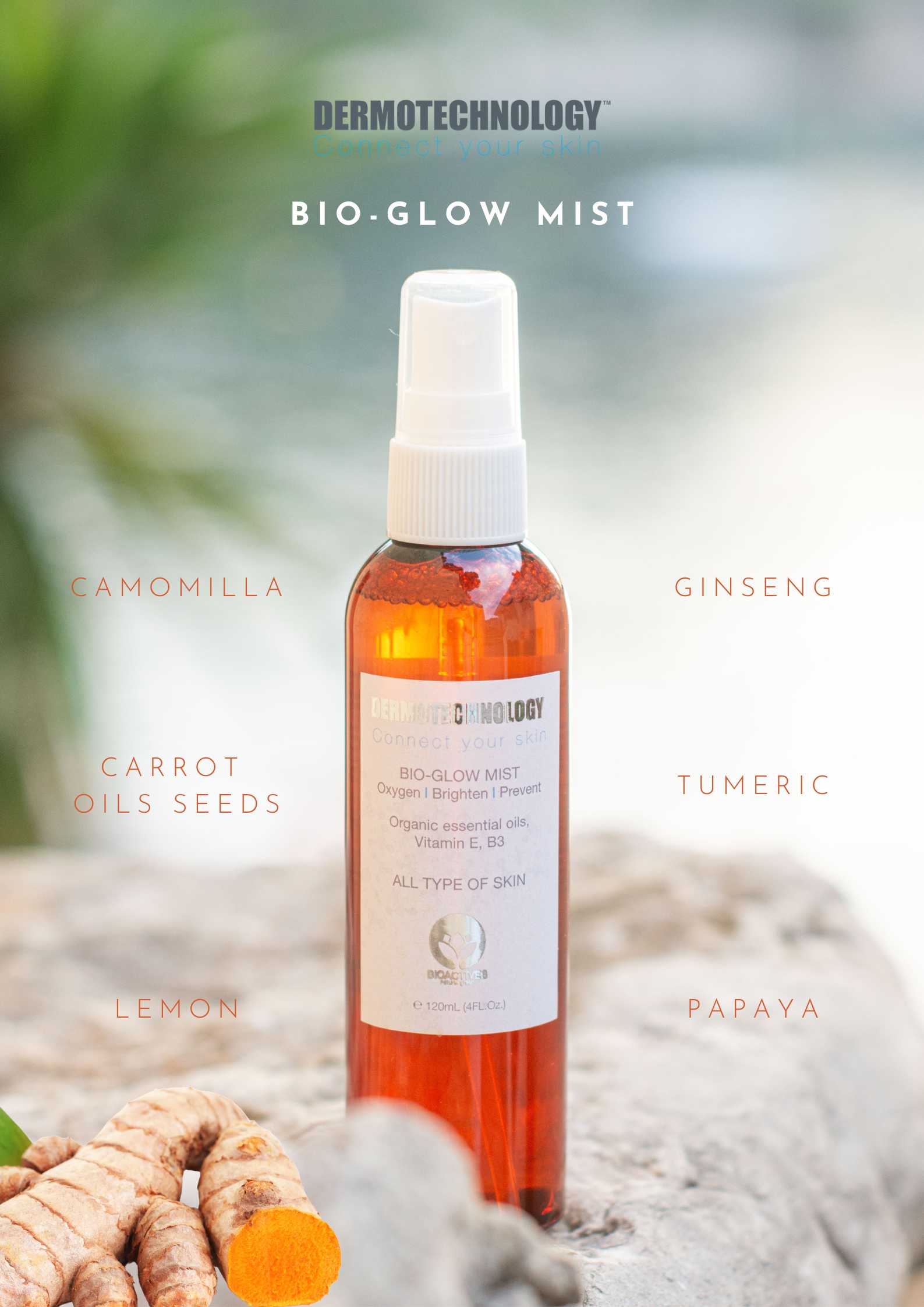 Dermotechnology display designed to showcase the Bio Glow Mist in a clean and professional way.