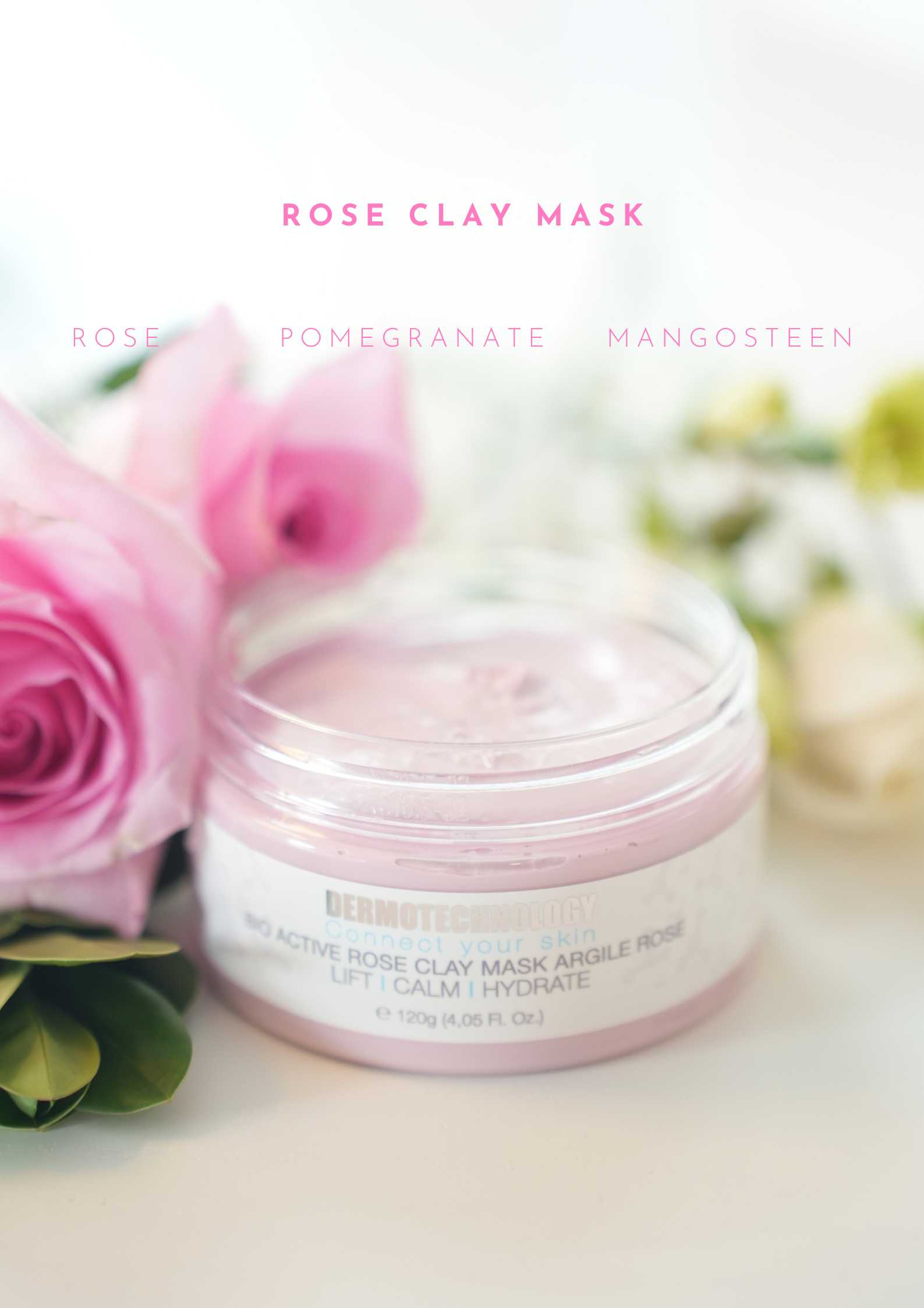 Dermotechnology display designed to showcase the Rose Clay Mask in a clean and professional way.